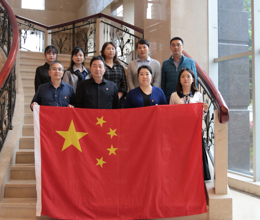 學習后,全體黨員與國旗合影,以錚錚誓言表達對黨和祖國的熱愛與祝福。