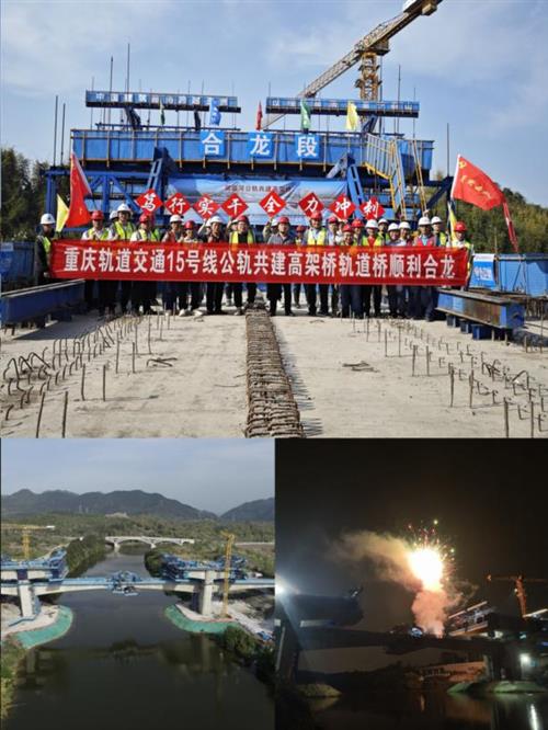 2024年3月31日凌晨,經(jīng)過連續(xù)4個小時施工作業(yè),隨著21方混凝土的最后一泵注下,標志著重慶軌道交通15號線御臨河公軌共建高架橋下層軌道橋中跨順利合龍。