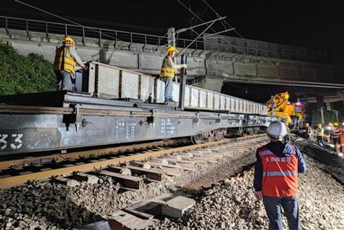 5月16日凌晨4時,隨著最后一片施工便梁從軌道車吊運至指定位置,標志著經過4個小時天窗點的緊張施工,15號線二期中梁山隧道下穿渭井下行線加固施工順利完成,為中梁山隧道正線安全下穿既有線創造了前提條件。