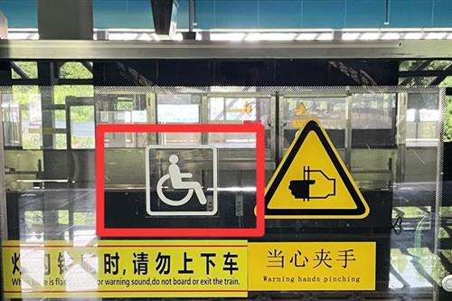 它的真實身份是“無障礙標識”,代表對應的車廂內設有輪椅固定器,乘坐輪椅的乘客在這兩道門上車是最方便的!