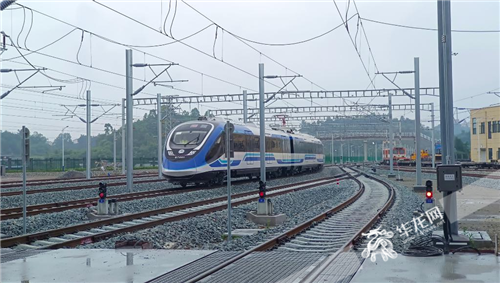 市域鐵路璧銅線進行接觸網熱滑試驗。華龍網記者 劉艷 攝市域鐵路璧銅線熱滑試驗完成